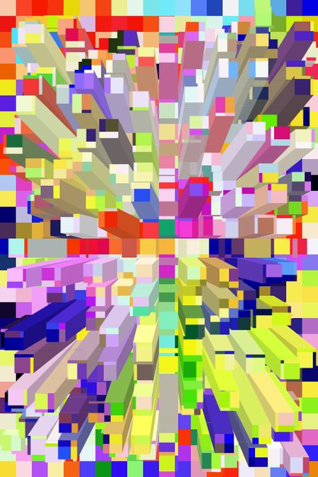 Chromatic diversity in urban architecture: Abstract cityscape of many skyscrapers of various colors seen from the air