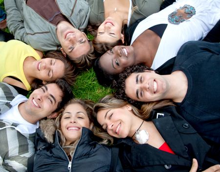 Circle of friends lying on the floor outdoors
