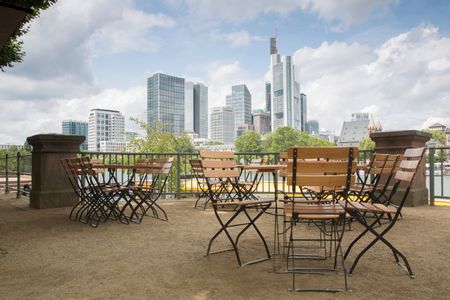 Cityscape in Frankfurt with Cafe Table and Chairs; Germany