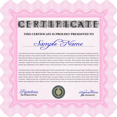 Classic Certificate or Diploma template. Money Pattern design. Pink color.