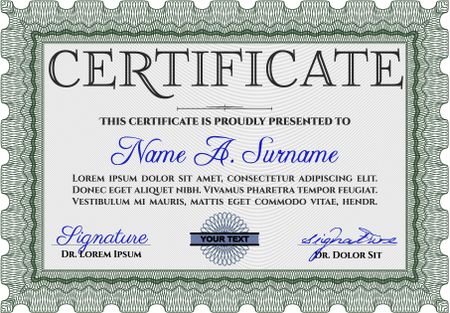 Classic Certificate template. Award. With great quality guilloche pattern. Money Pattern. Green color.