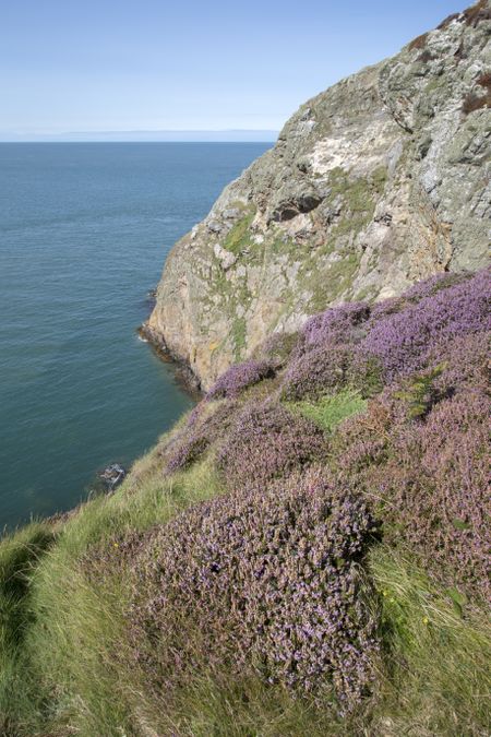 Cliffs and Heather at Llanbadrig; Cemaes; Anglesey; Wales; UK