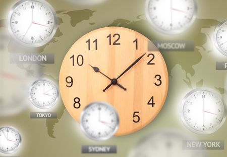 Clocks and time zones over the world illustration concept