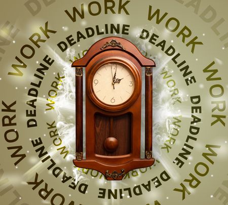 Clocks with work and deadline round writing concept