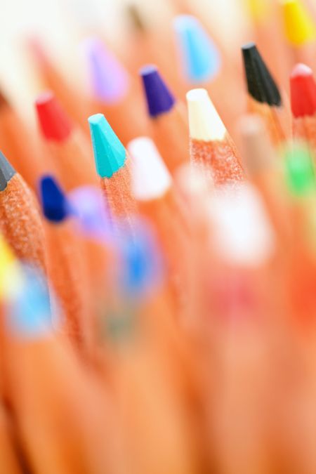 Close up of a bunch of color pencils