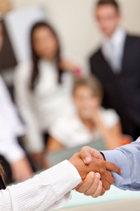 Close up of a business handshake at the office