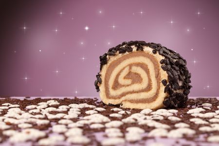 Close up of a delicious colorful baked sugar cake with star background