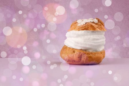 Close up of delicious tasty homemade cakes with bokeh light background