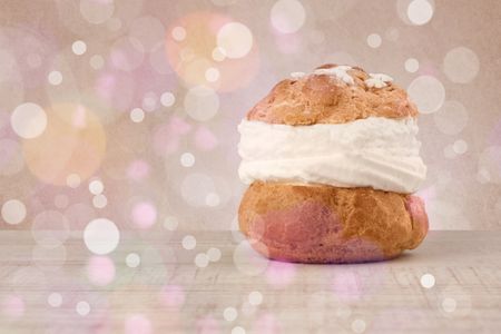 Close up of delicious tasty homemade cakes with bokeh light background