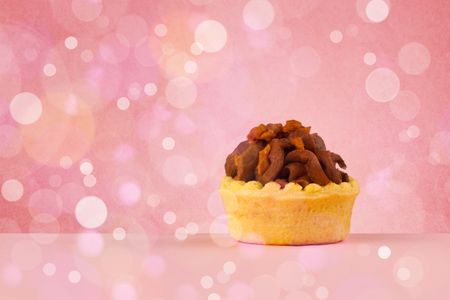 Close up of delicious tasty homemade cakes with bokeh light background