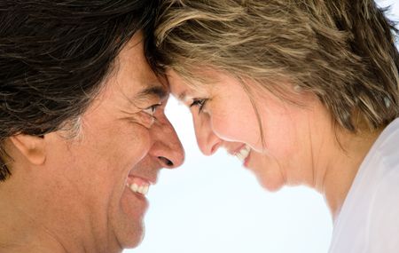 Closeup portrait of a loving couple smiling
