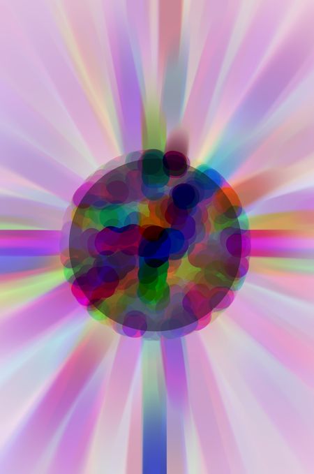 Coalescence of a world in an alternate universe: Multicolored imaginary abstract of planetary formation with radial blur of a starburst in the vicinity