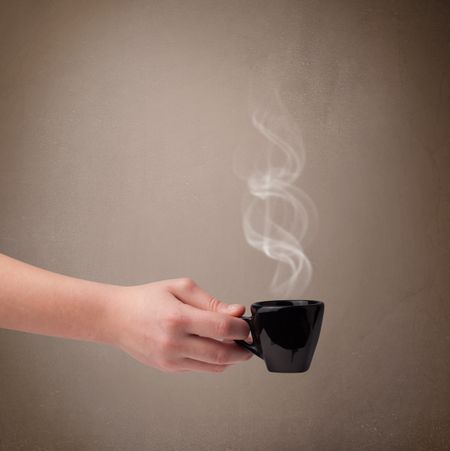 Coffee cup with abstract white steam, close up