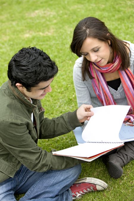 college or university students studying outdoors
