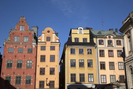 Colorful Building Facades, Stortorget Square, Gamla Stan - City Centre, Stockholm; Sweden