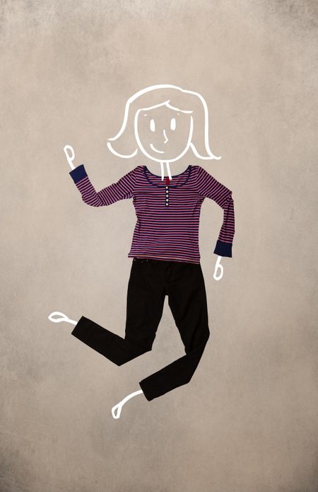 Colorful placed clothes in different actions with woman drawing