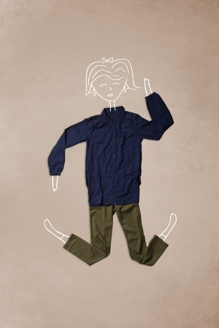 Colorful placed clothes in different actions with woman drawing