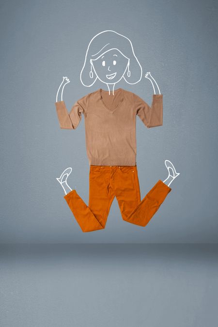 Colorful placed clothes in different actions with woman drawing