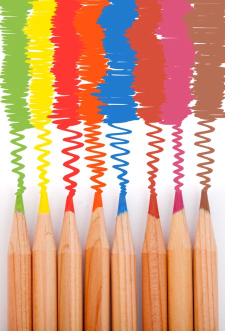 Coloring with a set of color pencils over a white background