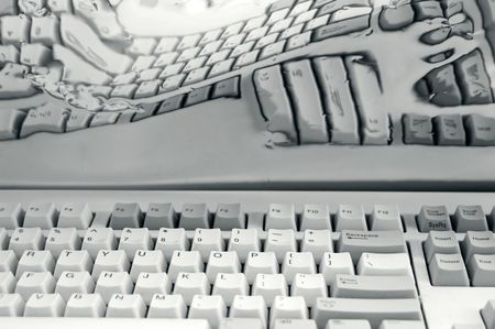 Computer keyboard and its distorted reflection