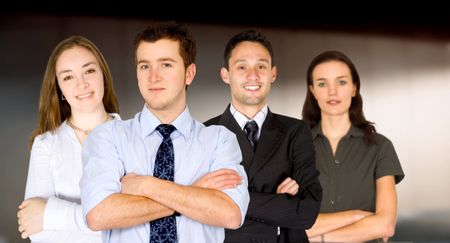 confident business man and his business team - group formed of caucasian people in an office environment