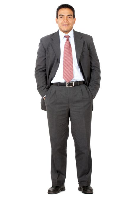 confident business man standing up - isolated over a white background
