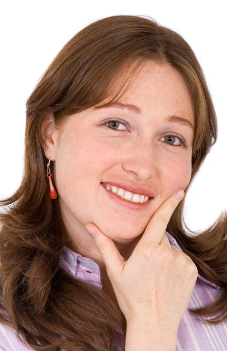 Confident business woman smiling portrait - isolated over a white background