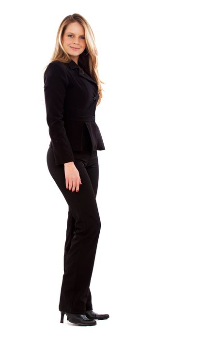 confident business woman standing wearing elegant clothes - isolated over a white background