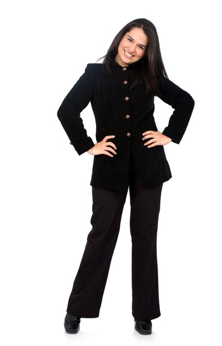 confident business woman standing wearing elegant clothes - isolated over a white background