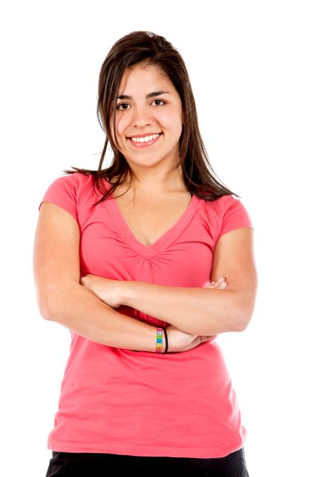 Confident casual girl isolated over a white background