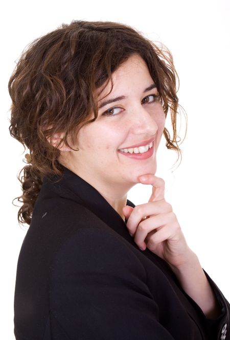 Confident and friendly business woman over a white background