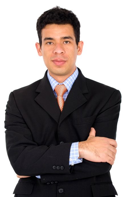 confident hispanic business man portrait - isolated over a white background
