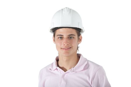Construction worker wearing a helmet - isolated over a white background