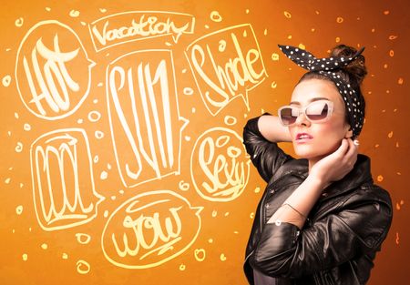 Cool teenager with summer sun glasses and vacation typography concept