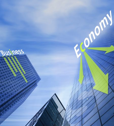 corporate buildings with sky at the top