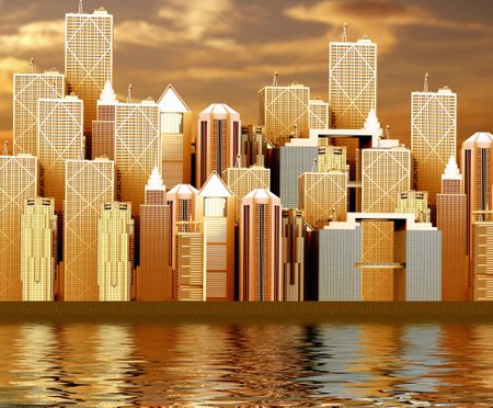 corporate buildings at sunset time made in 3d