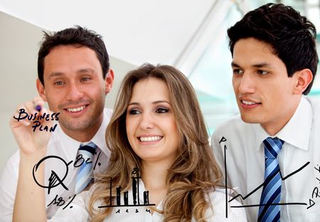 Corporate group making a sketch of a business plan