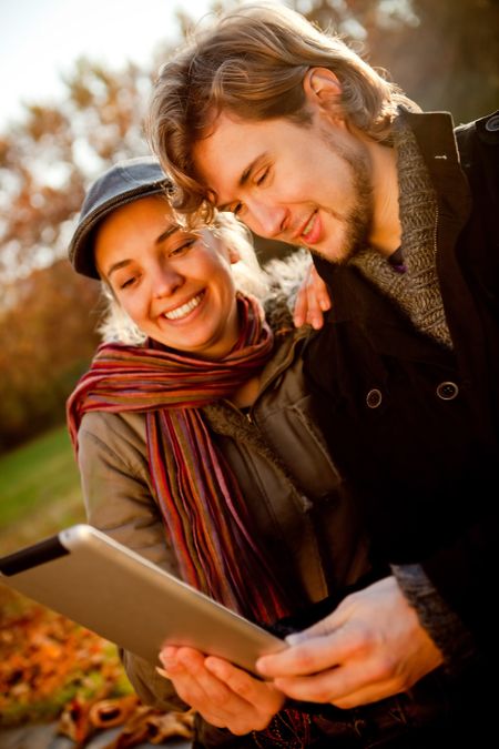 Couple bringing technology outdoors with their tablet