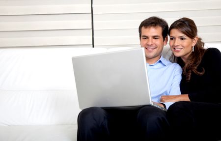 Couple at home working on a laptop