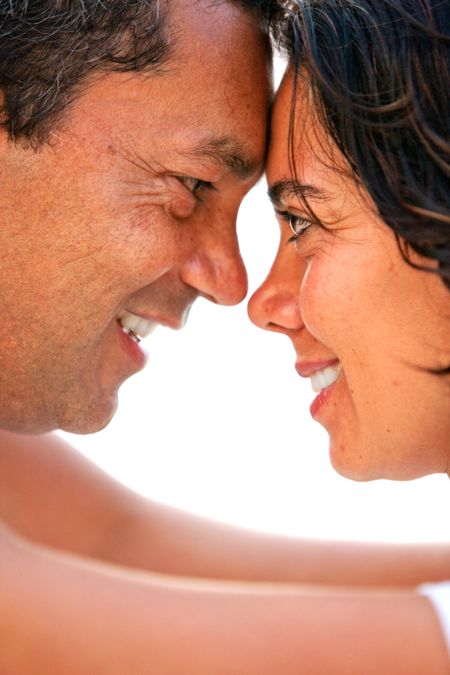 couple in love facing each other isolated over a white background
