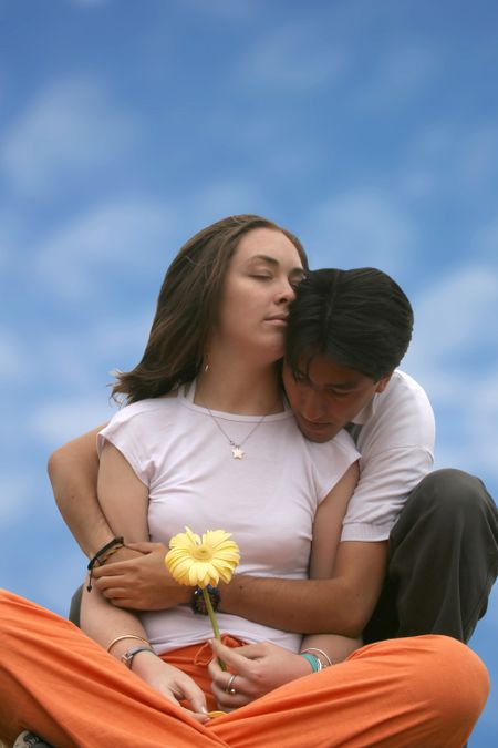 couple in love with the sky as a background