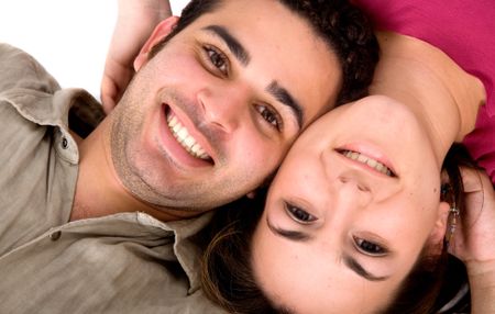 couple of lovers on the floor - over a white background
