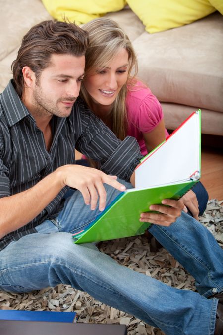 Couple of students studying in the living room