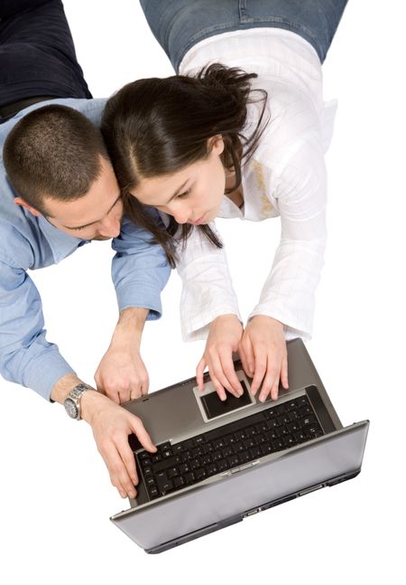 couple of students working on a laptop over white