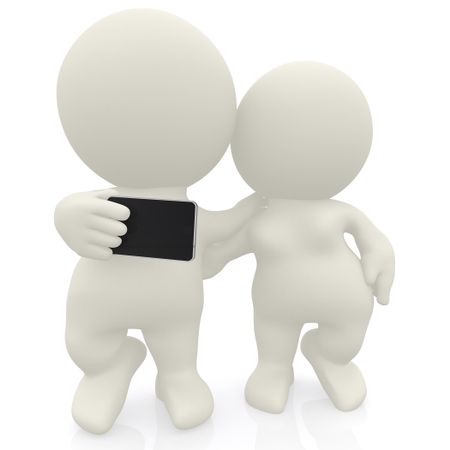 Couple taking a self portrait with their mobile phone - isolated over white