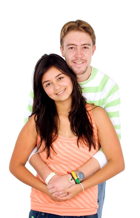couple of young people portrait smiling - isolated over a white background