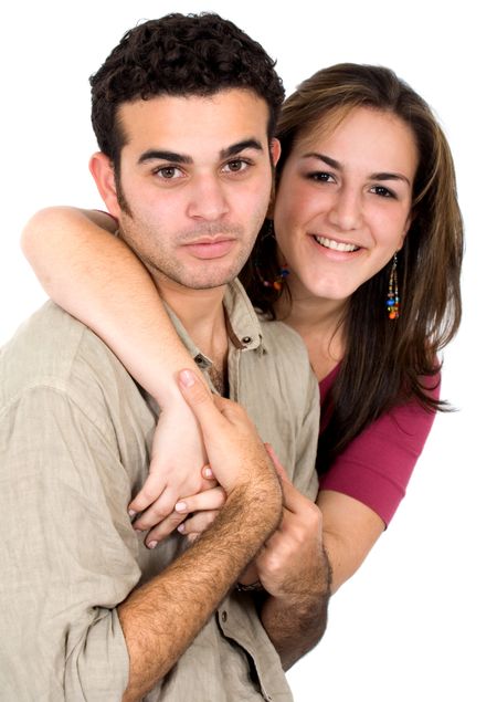 couple of young people portrait smiling - isolated over a white background
