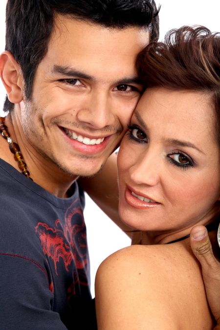 couple of young people portrait smiling - isolated over a white background