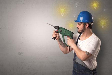 Craftsman with tool and new idea symbol in his hand.