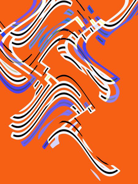 Curvy two-dimensional abstract of a musical instrument on red